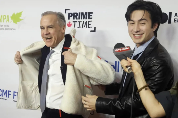 昨晚,卡尼罕见地走上红毯,一改以往在国际政治舞台上的严肃画风,现身渥太华Prime Time影视行业大会。